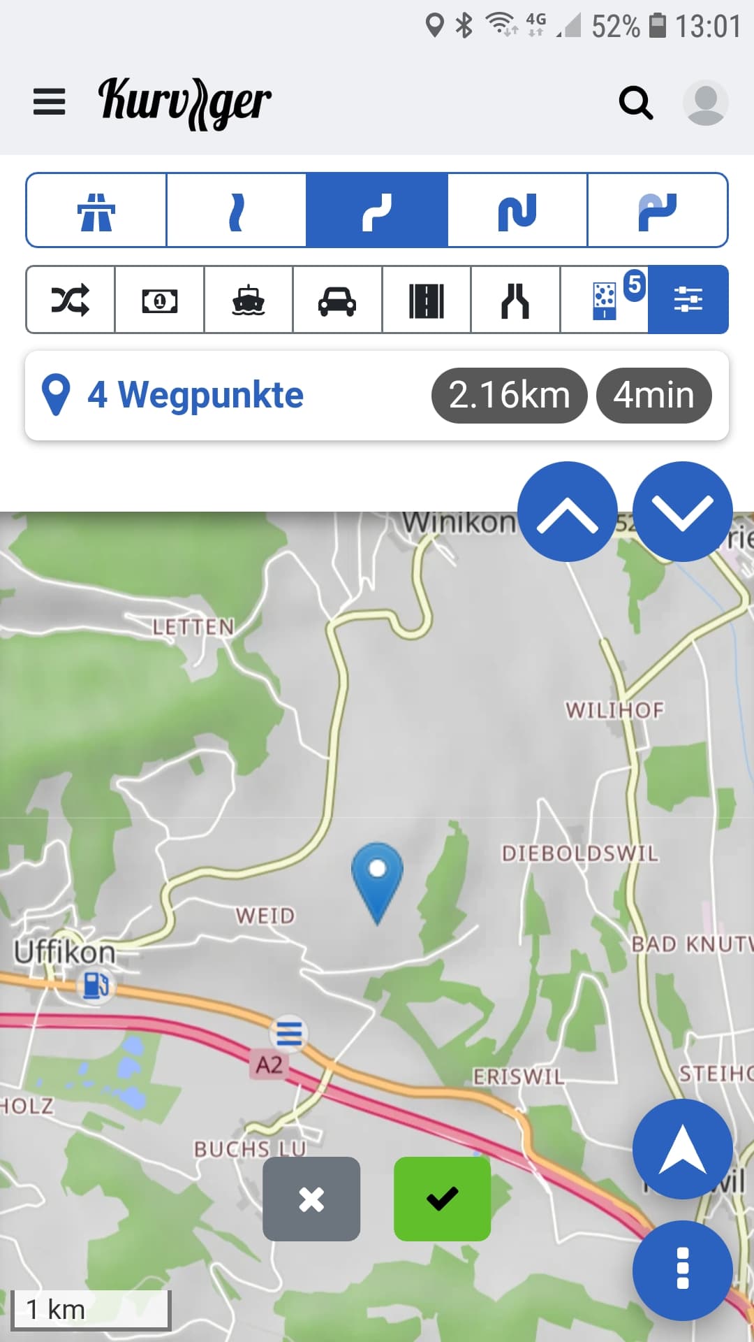 Daher wäre die “intuitivere” Lösung jene, die vermutlich 95% aller Apps anbieten: nach Setzen eines Punktes ein “Popup” anzeigen, in dem angeboten wird was man tun kann: