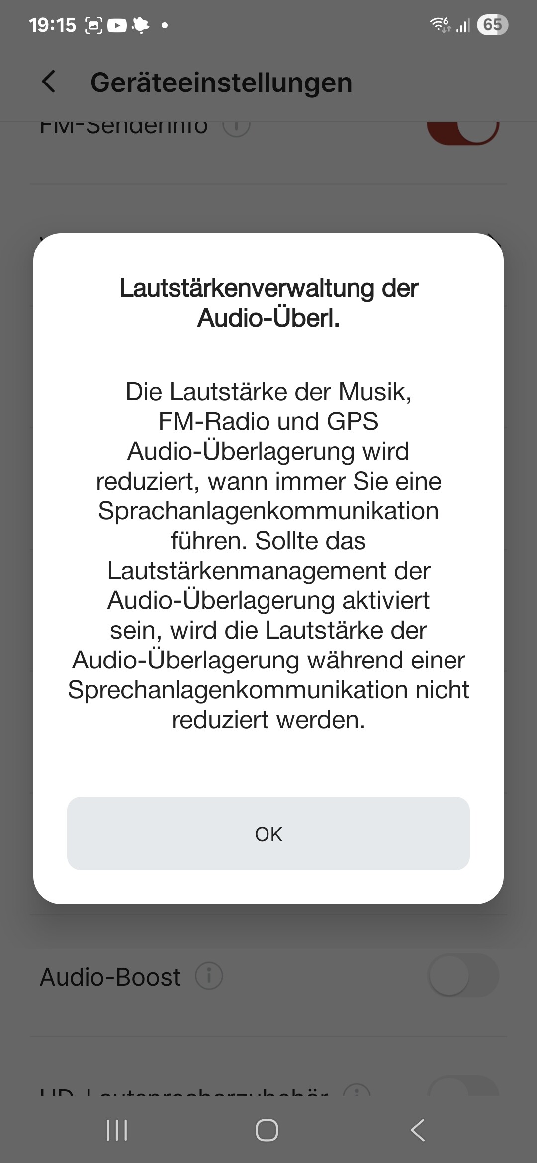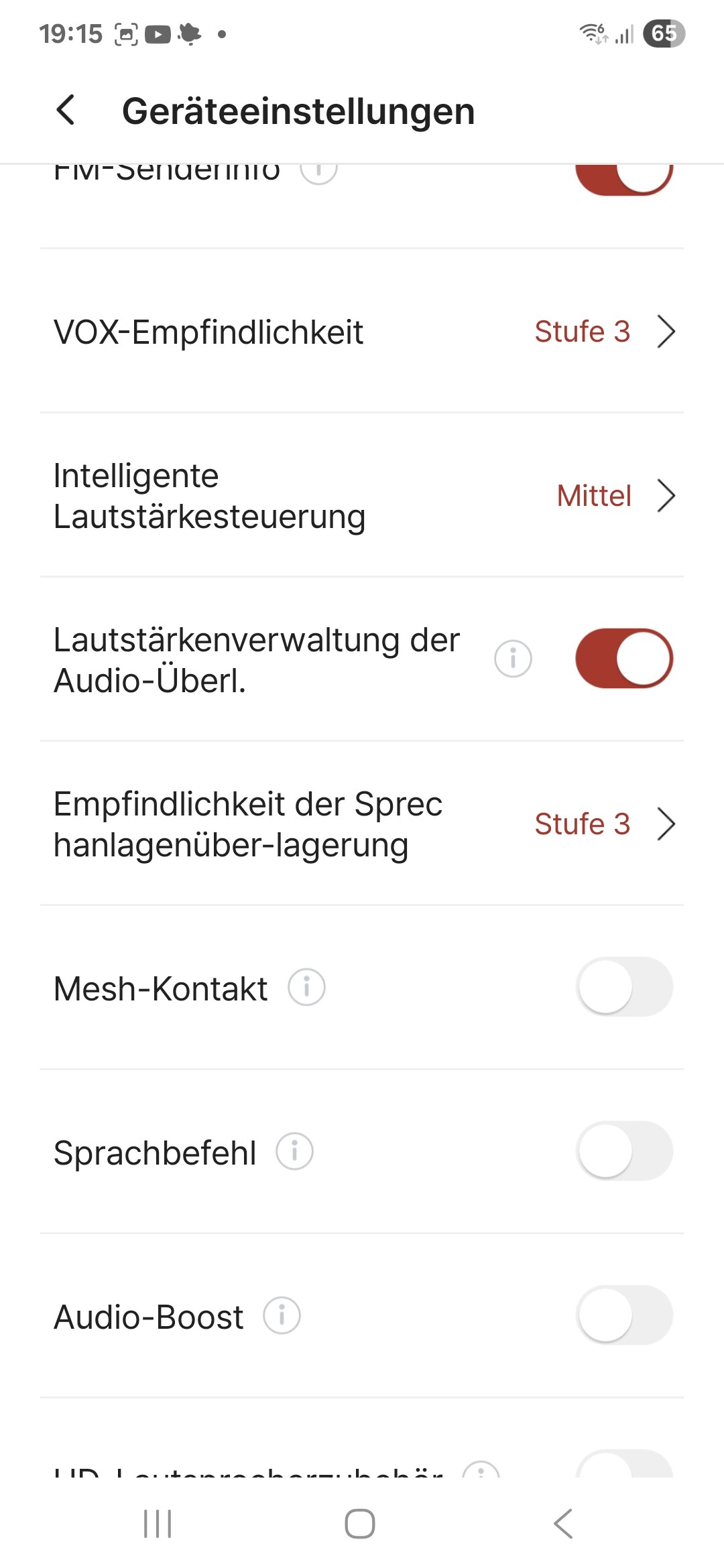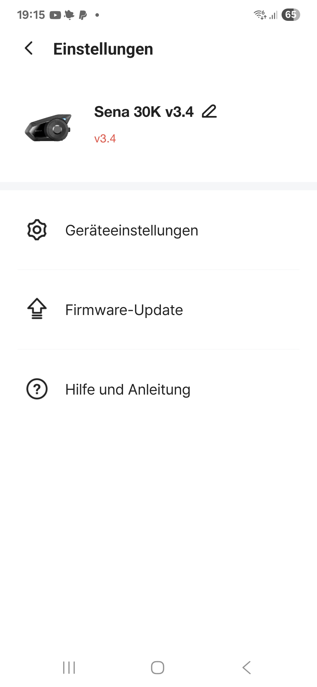 so, ich habe den Helm mal angemacht und der Akku war doch tatsächlich noch voll. Ich habe den Helm jetzt mit meinem Samsung S24+ gekoppelt und bin dort in die Sena App in die Einstellungen. Hier das Ergebnis: