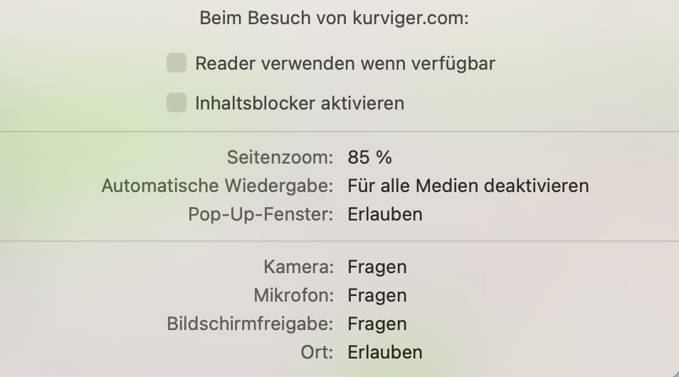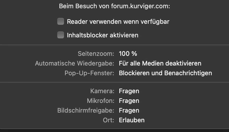 Wenn ich den Zugriff von Kurviger.com dauerhaft erlaube, dann kommt es zu den Fehlfunktionen. Mir ist gerade jedoch aufgefallen, dass auf BEIDEN MacBooks “Aktueller Standort” korrekt angezeigt wird, wenn ich auf “Fragen” einstelle, so dass jedesmal das Popup erscheint, welches um Erlaubnis bittet.
