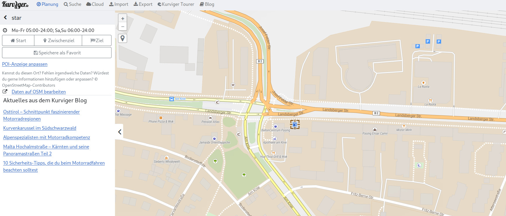 You can even see the time when the petrol station is open. (This is very nice). And it’s possible to select the POI as start or end of the trip.
