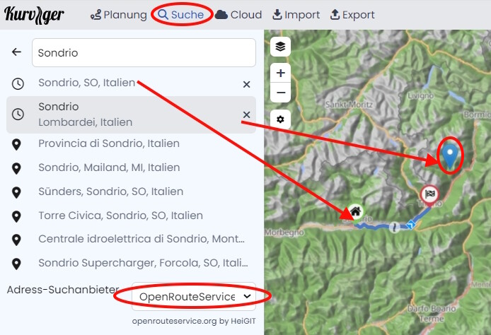 Mindestens einem Deiner Punkte scheinen noch Koordinaten oder eine Adresse zu fehlen.