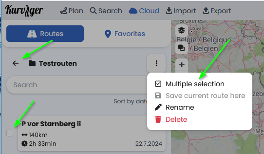 Quick update, we just updated the Kurviger website to allow bulk move and delete operations in the Kurviger cloud, this change will be part of the next app version as well. Please let us know if this works for you or if something is not working / missing.