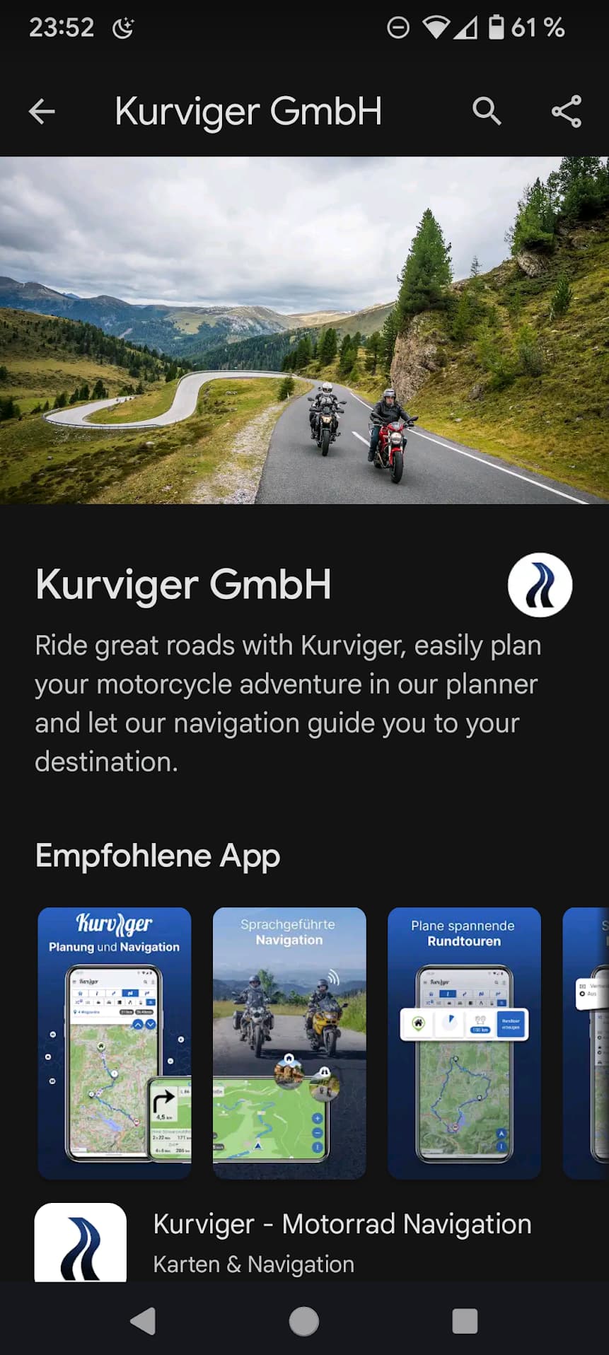 Kurviger is multi-purpose app, and I primarely use it for route planning and trip preparation. Navigation is for me a secondary usage, for this Garmin, TomTom, Google Maps & Co. have a couple of years more user feedback and development experience.