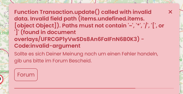 EDIT: it is definitely interference with overlays. I tried to move two routes from a folder that was defined as an overlay. The move command would not complete and I could not cancel the operation. I could select another folder (during the “move” command was still running, which should not be possible) and then the above error appeared.