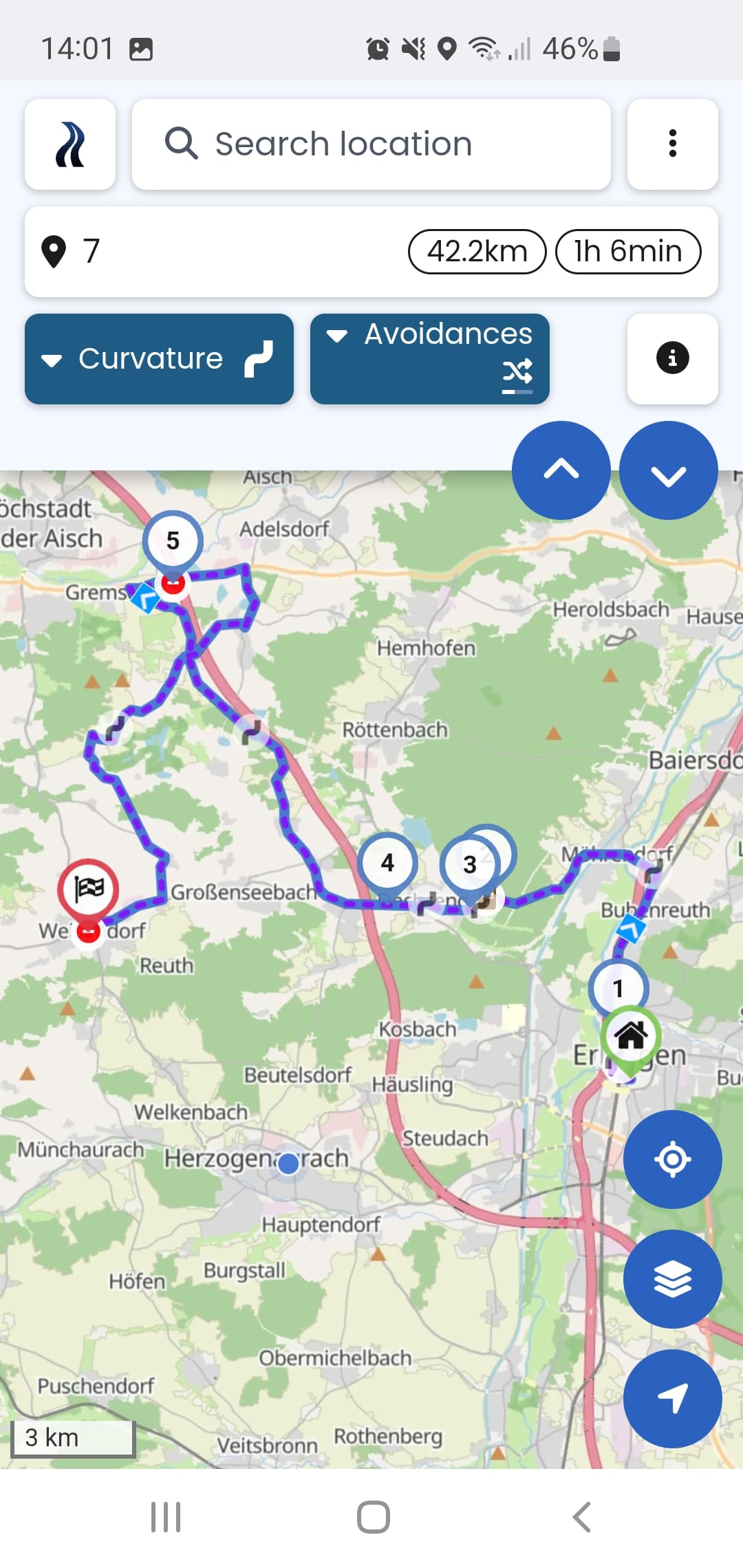 routete Kurviger zu einem früheren Punkt. Vielleicht wars der Startpunkt oder der zweite Punkt, das weiß ich nicht mehr. Ich hatte aber nicht auf “Start ersetzen” oder “Start als Wegpunkt” oder “Route ab hier” getippt. Ist denn standardmäßig “Start ersetzen” eingestellt? Falls das so ist, würde ich vorschlagen, standardmäßig “Route ab hier” einzustellen.