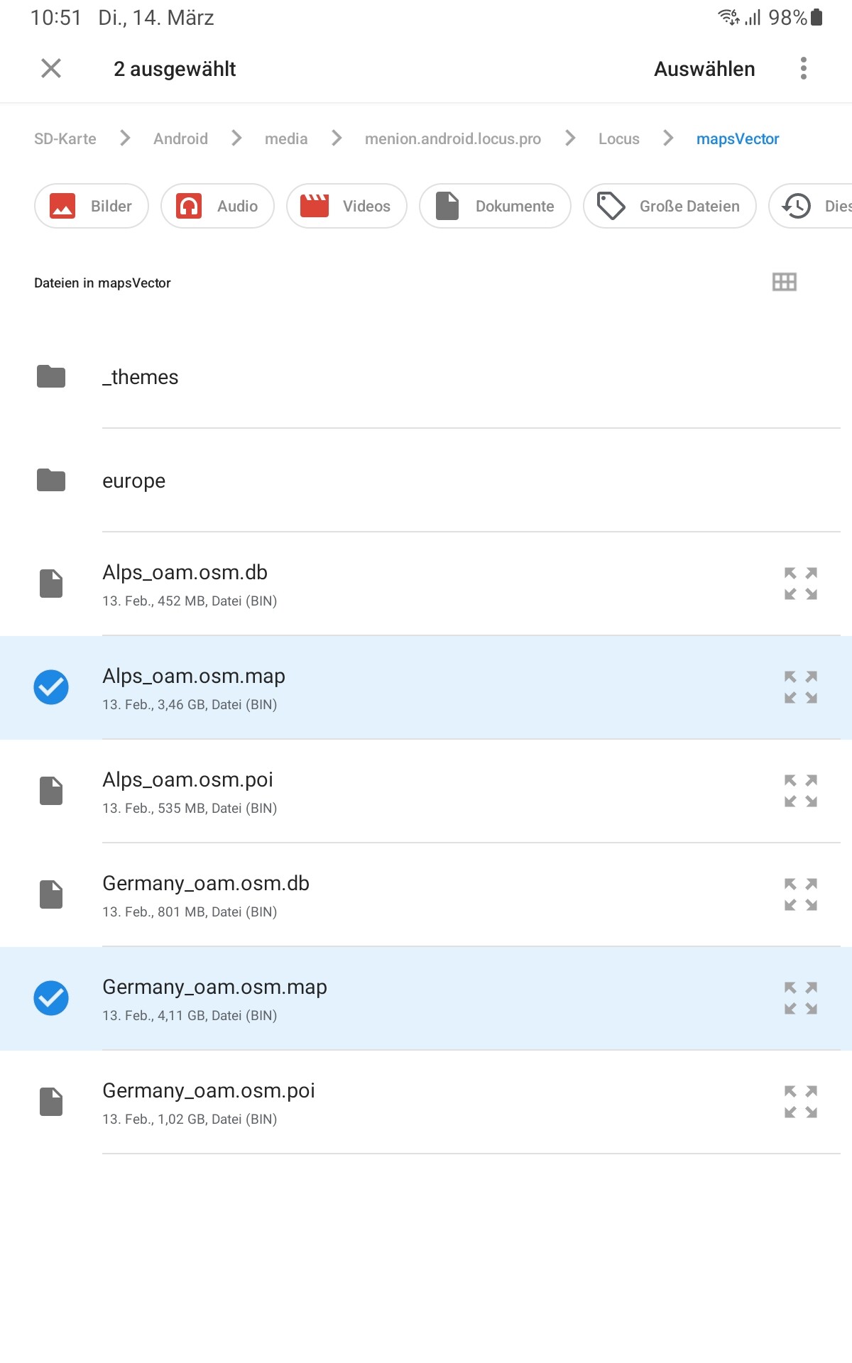 Karten im Download Ordner und/oder im separaten Ordner abgelegt,