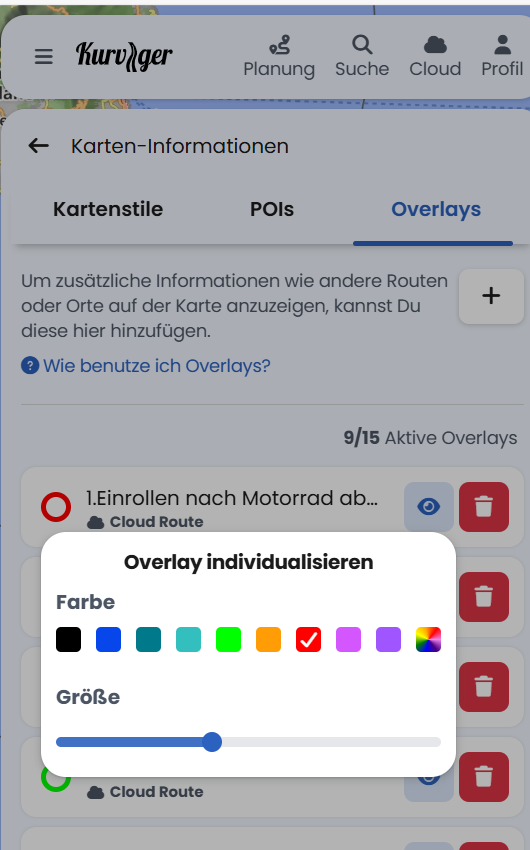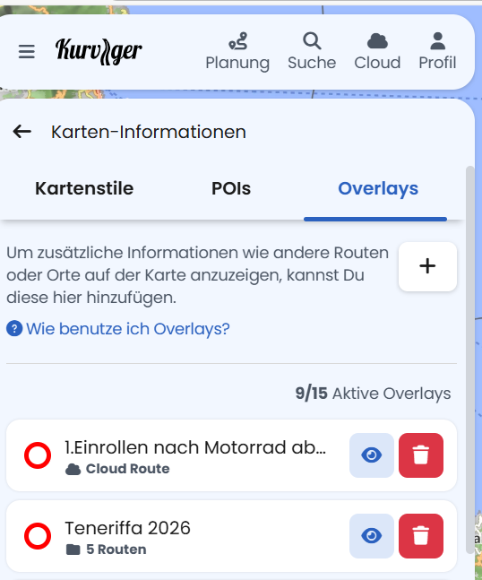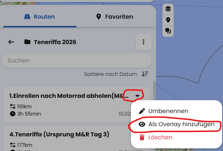 Und warum geht dann dies, was ich gemacht habe? Ich habe die Routen in meinem Ordner und habe die Overlays auf der Karte eingeblendet, auch wenn ich die App / Planung nur öffne.