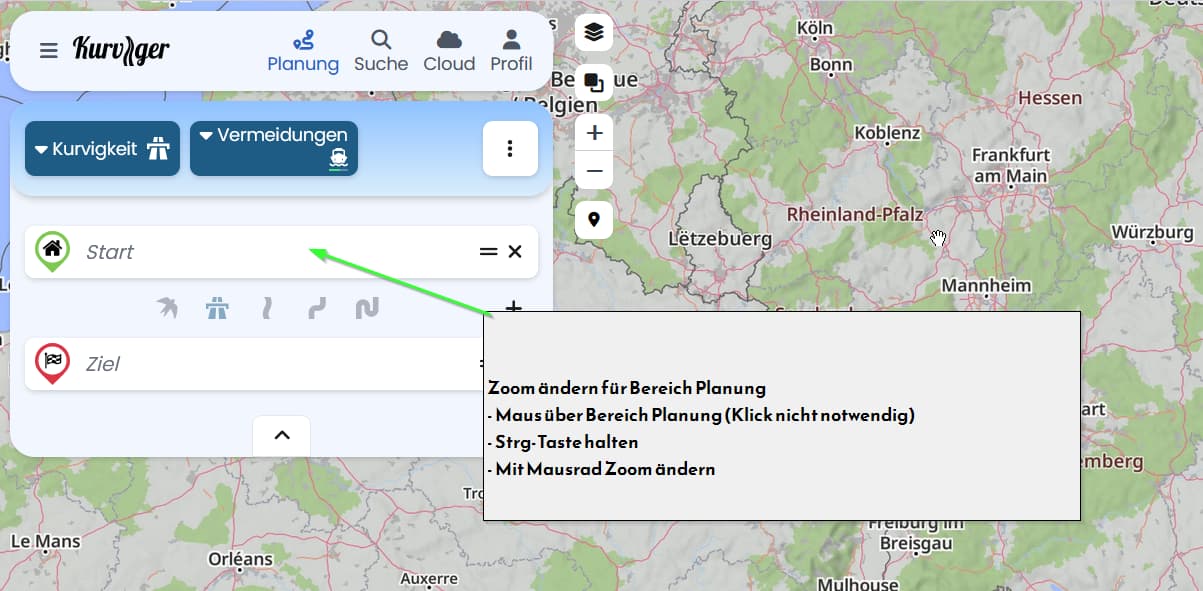 Da ich auch Besitzer eines 15-Zoll Laptops bin .. hier ein kleiner Trick, vielleicht kennt es nicht jeder. Ist ganz normaler Zoom, nicht speziell für Kurviger.