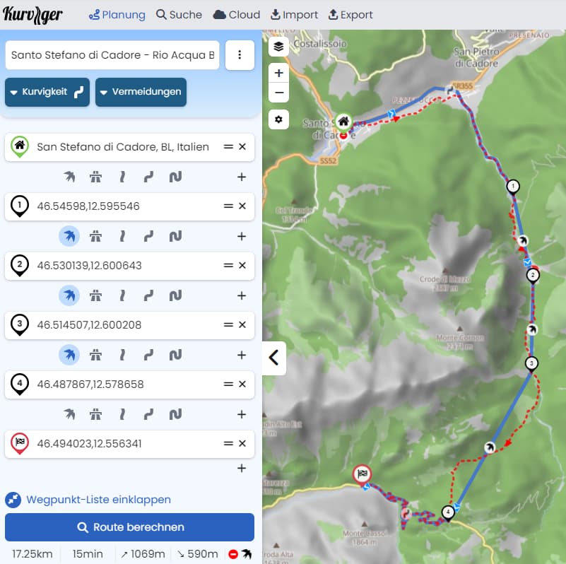 Warum exportierst du eine Kurviger Route als .gpx wenn du diese wieder in Kurviger nutzen willst?