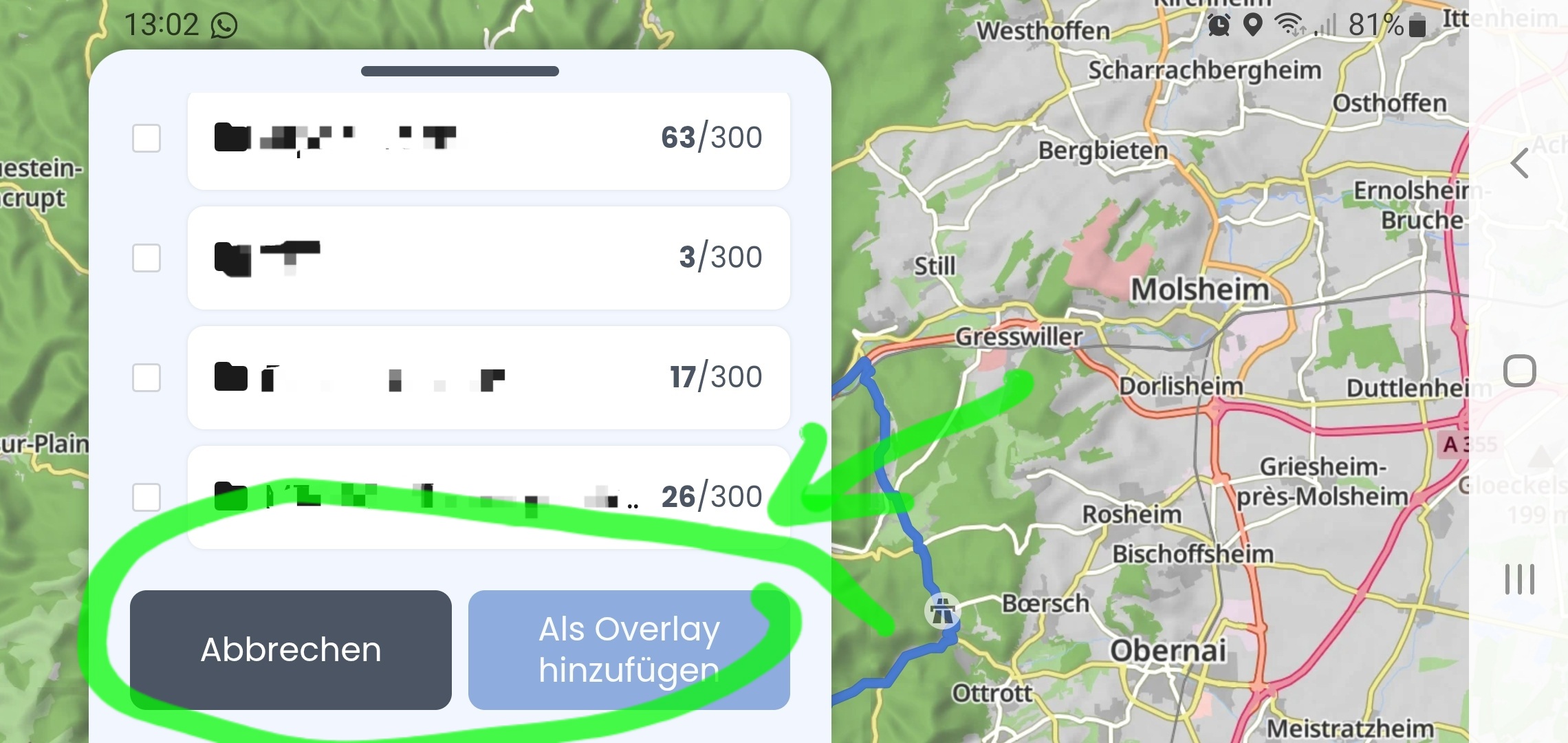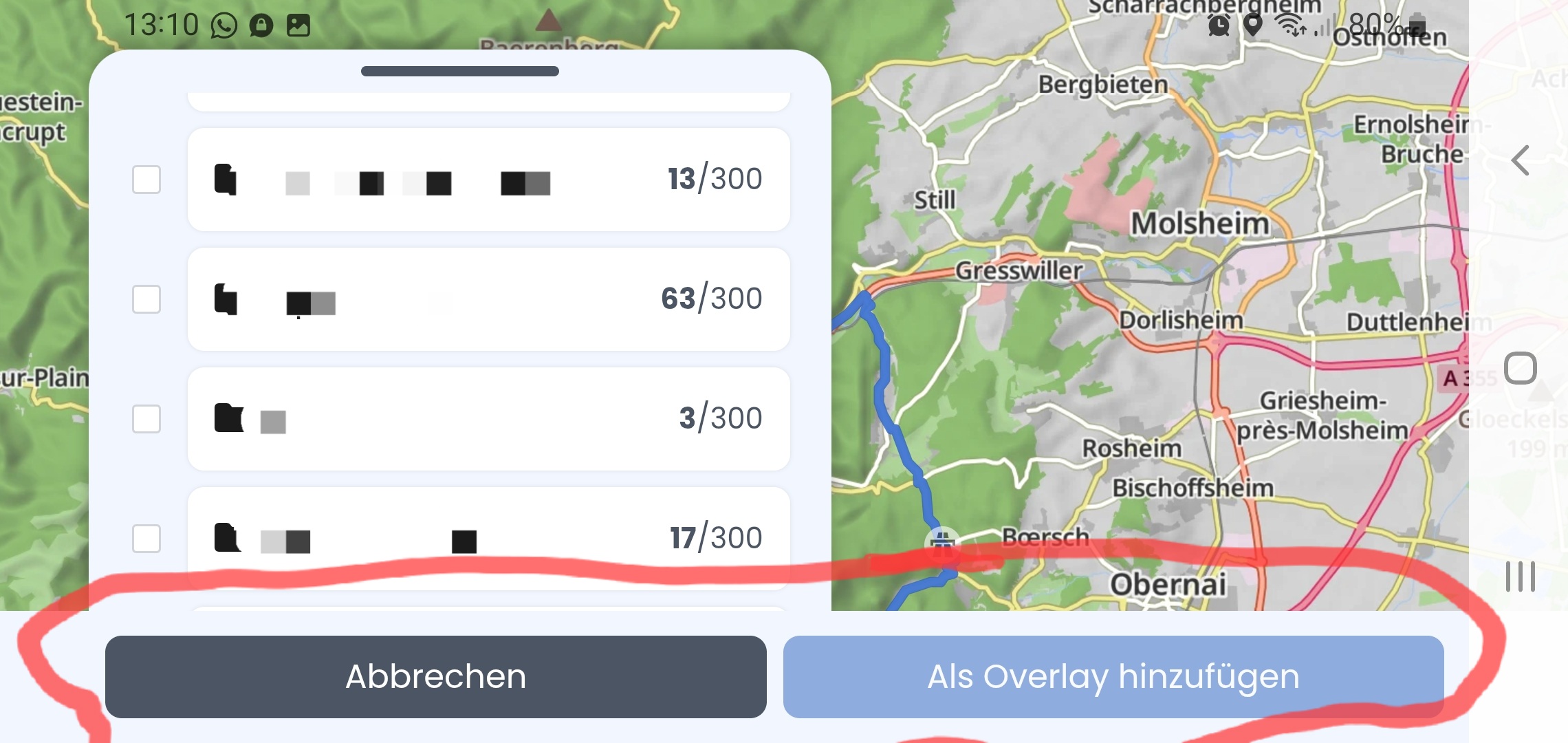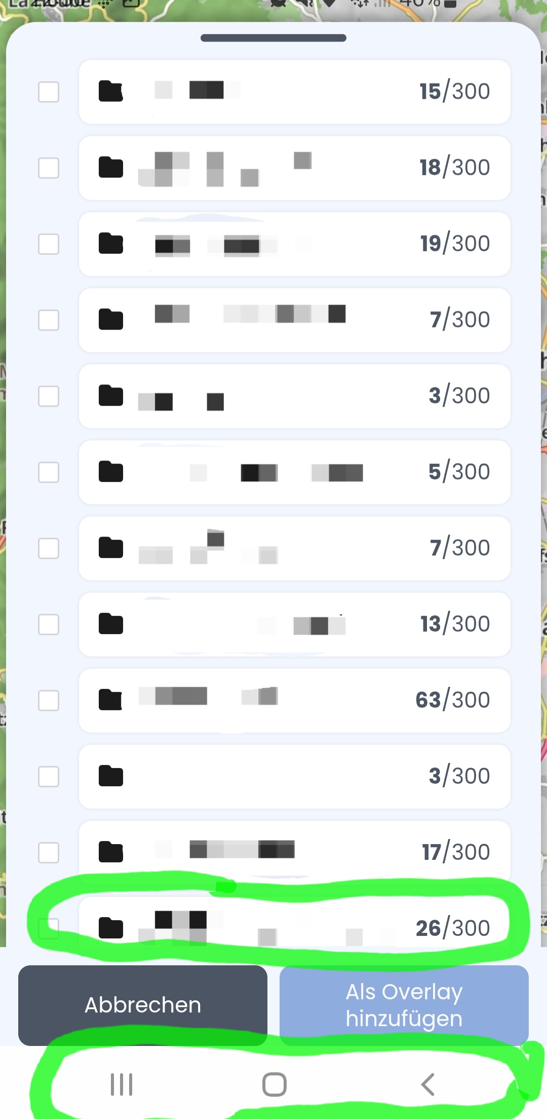 On the right screenshot (red markings) Android navigation buttons are hidden and the last entry is completely covered by Kurviger buttons.