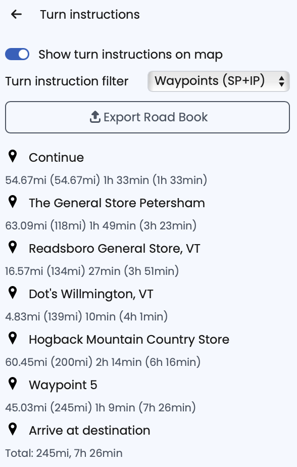 The Turn instructions are correctly displayed in miles, but when I switch to the Road Book view, the first two columns are displayed in meters instead of miles.