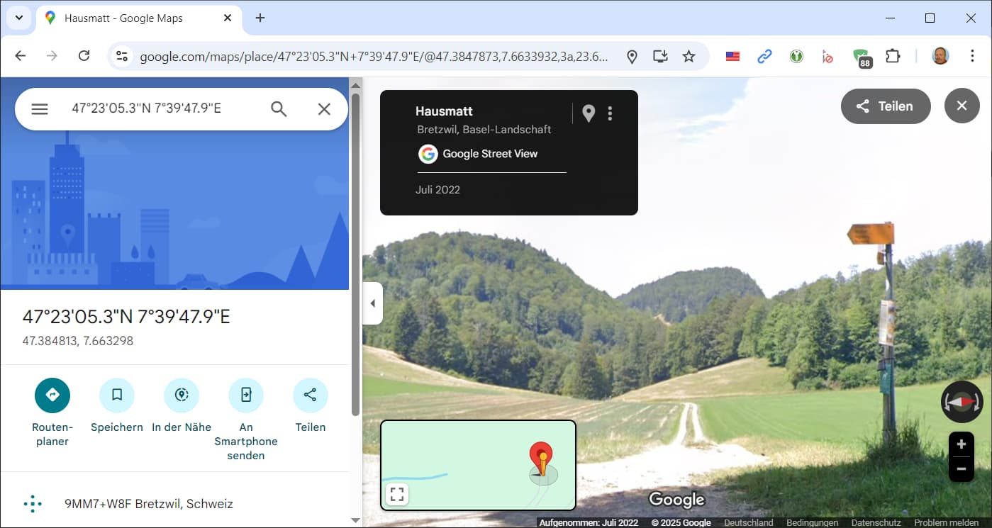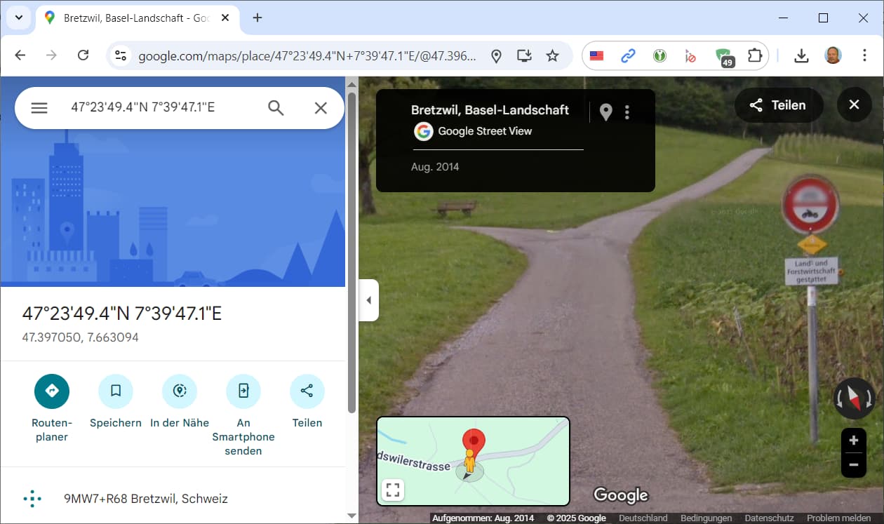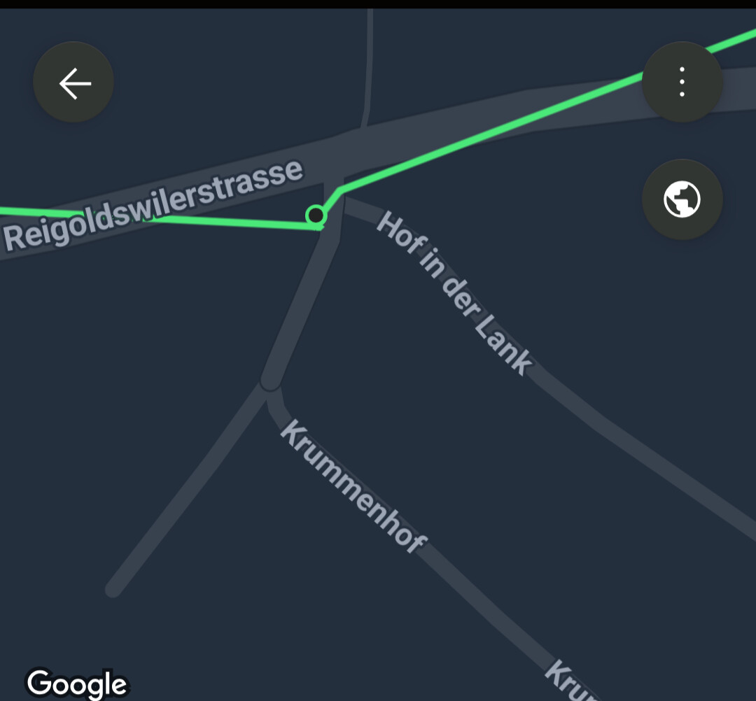 Der Galmweg war es nicht. Es war schon weiter unten im Dorf( Bretzwil) . Da bekam ich die Sprachanweisung rechts abbiegen und dort standen Schilder, dass nur Lieferverkehr erlaubt ist. Die Strasse nennt sich Hofgut Ramstein( Habs in Honda Roasync aufgezeichnet)