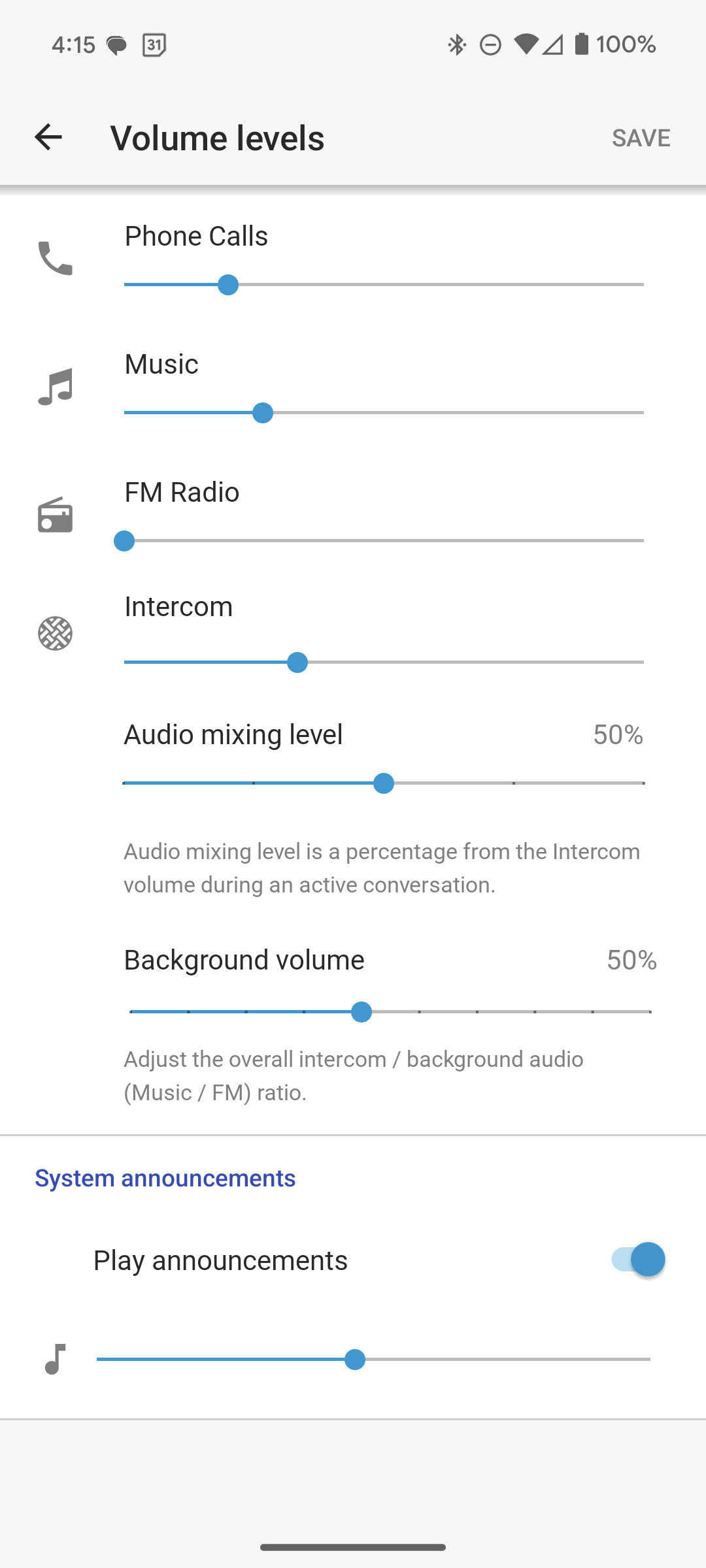 (I zeroed out FM Radio only because I never use Cardo’s FM Radio.)
