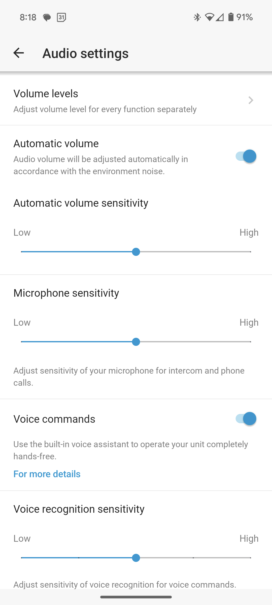I had to do some test rides while finding the settings that worked for me. My settings are shown in the last screen shot below, but I use custom molded ear buds plugged into my Cardo unit, so my settings probably differ from someone who is uses Cardo’s helmet speakers.