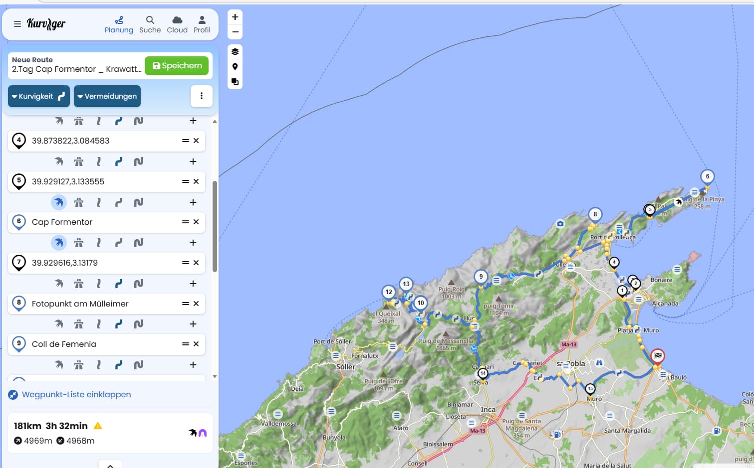 Start: Pollenca nach Cap de Formentor. Kurviger verweigert mir diese Strasse, ich finde nicht heraus wieso? Kennt jemand das Problem?