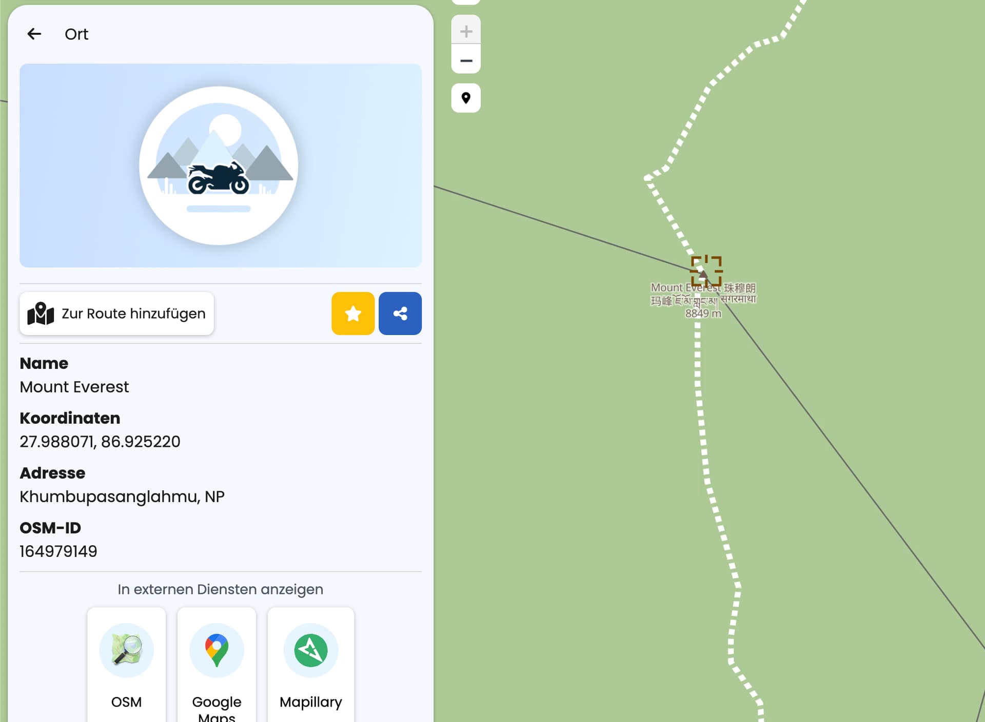 Diese Anzeige ist unabhängig von der Routenplanung. Du kannst dir auch den Mount Everest anzeigen lassen auch wenn man da nicht so gut Motorrad fahren kann ![]()