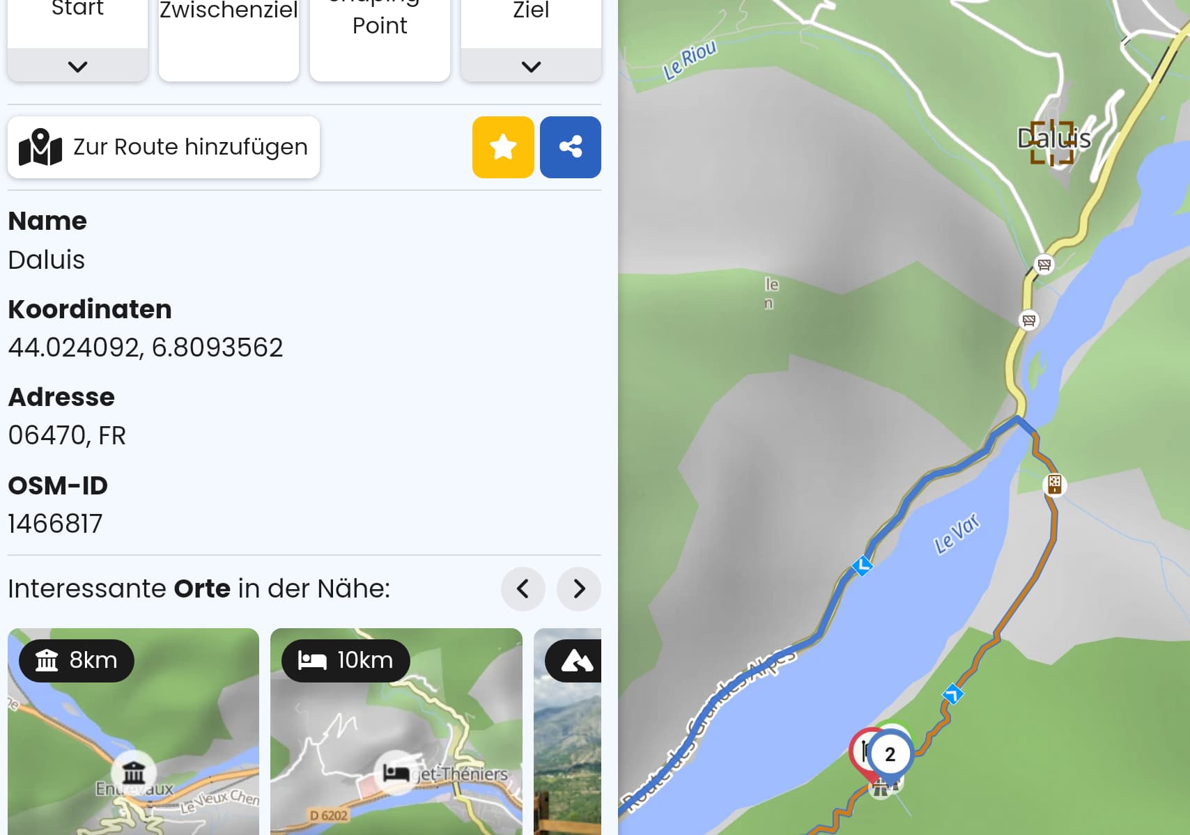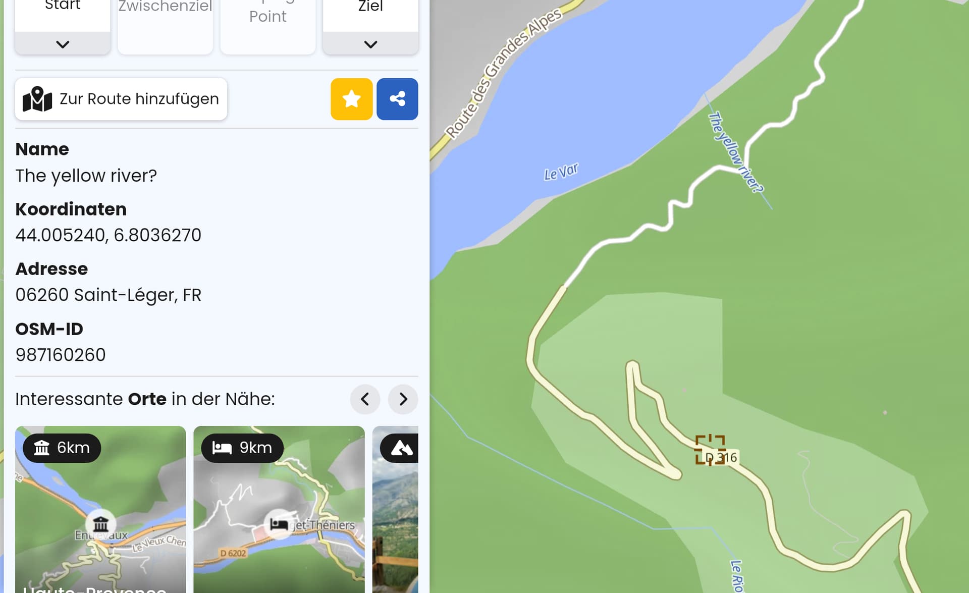 Trotzdem zeigt Kurviger Infos zum Fluss an, auch der Link (OSM Id) springt zum Fluss.