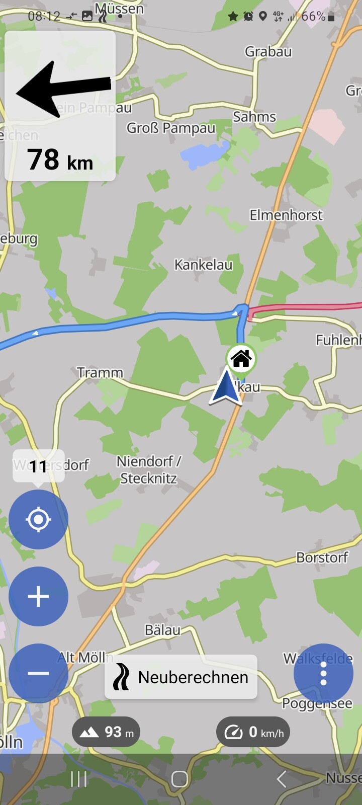 möglich stattdessen die Entfernung und Richtung bis zum nächsten Wiedereintritt in die Route anzuzeigen?