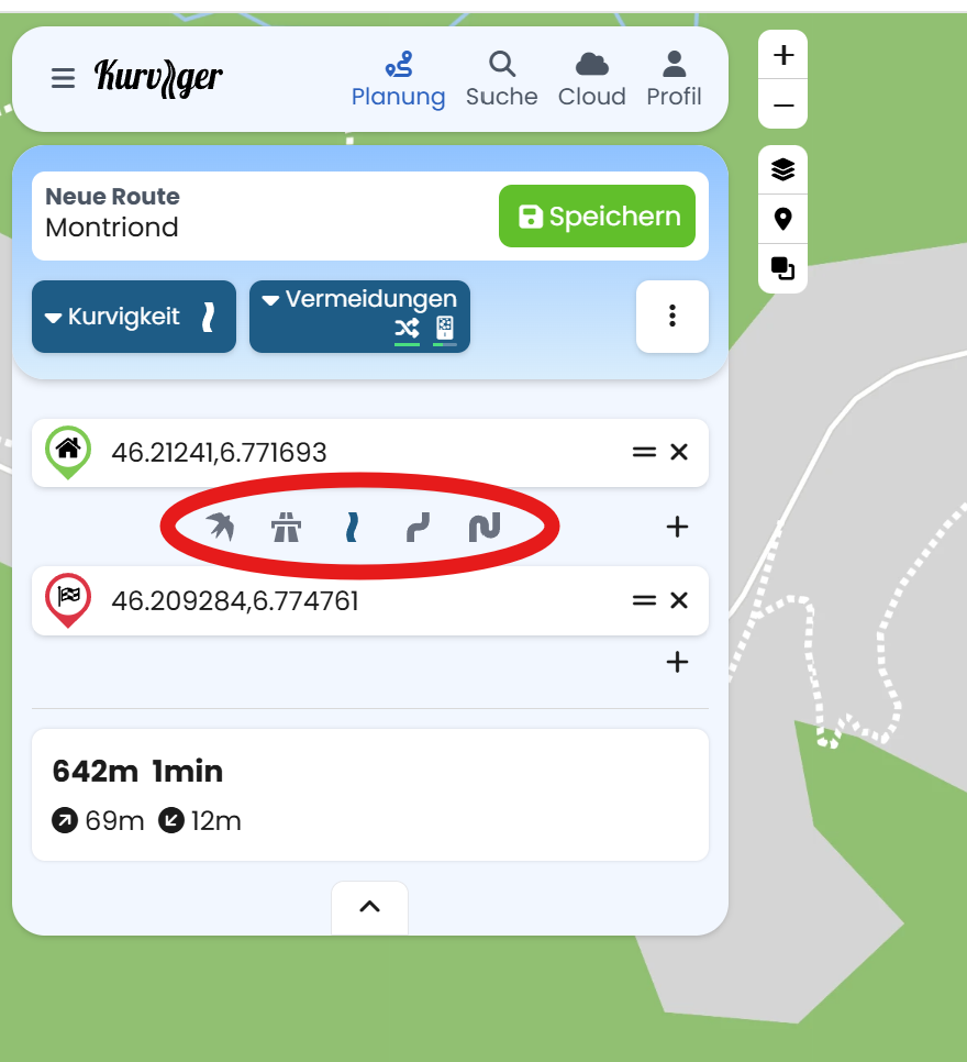 Die Planung einer Route am PC finde ich richtig gut. Da ich meine Routen aber zu 90% am Smartphone bzw. Tablett plane wünsche ich mir die Auswahl des Routentyps zwischen den beiden Eingaben “Start” und “Ziel”. So wie es am PC gelöst wurde. Es ist immer sehr mühsam in der Karte das Symbol des Routentyps zu suchen und abzuändern oder mache ich hier grundlegend etwas falsch.