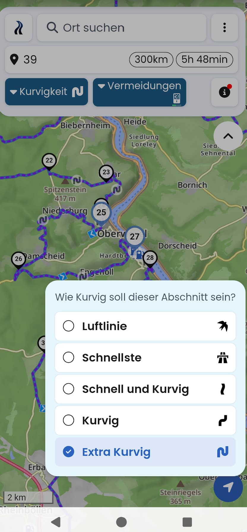 Naja, das ist eine Frage der Sichtweise. Wenn Du die Route fertig geplant hast, bekommst Du die direkt angezeigt und kannst die Routenoptionen ändern. Wie auch immer, am Smartphone haben wir leider nicht genug Platz um die Schaltflächen analog zur Webseite mit vernünftiger Bedienbarkeit darzustellen.