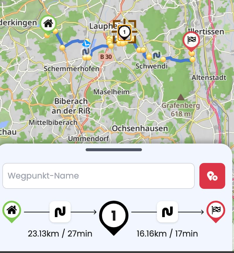 Das wird am Smartphone schwierig mit der Größe und zuverlässigen Bedienbarkeit der Schaltflächen. Aus Neugier meinerseits - änderst Du das Routenprofil bei vielen Zwischenabschnitten?