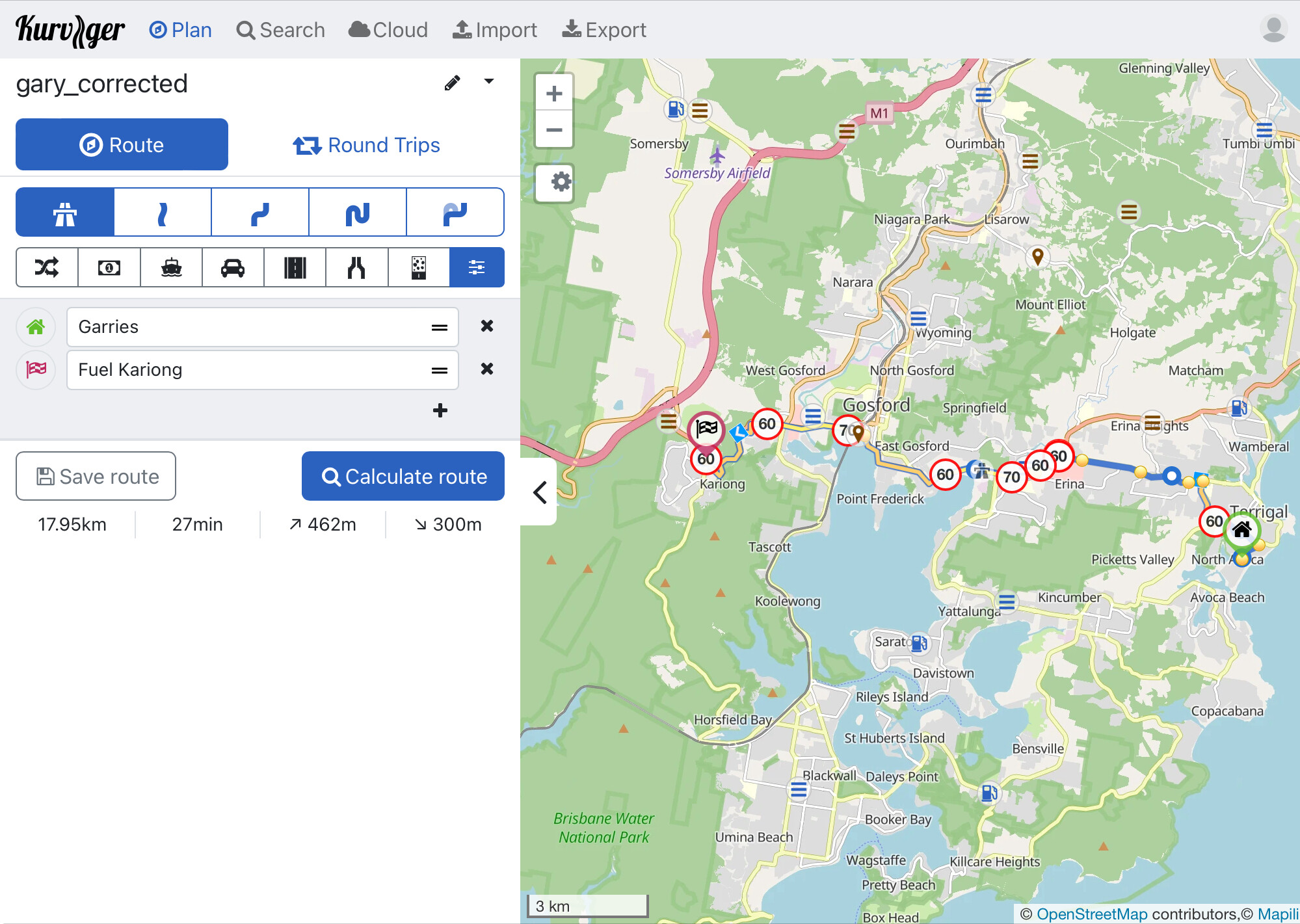 <wpt lat=“-33.4565” lon=“151.4383”><name>Garries</name><desc>Continue onto Tramway Road</desc><sym>Flag, Green</sym><type>start</type></wpt>