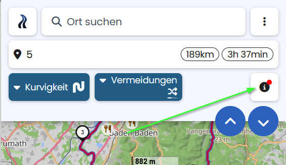 Wenn ich mir so einen zufälligen “Round trip” generiere, dann ist es mir egal, wo diese extra VP ist, dann kann die App dies selbs entscheiden. Ein einfacher Knopfdruck wäre mir hier lieber, als Ansicht wechseln und auf der Karte pieksen um die blaue linie zu treffen und einen VP zu platzieren… Dann muss ich aus der Ansicht wieder zurück zur Navigation…