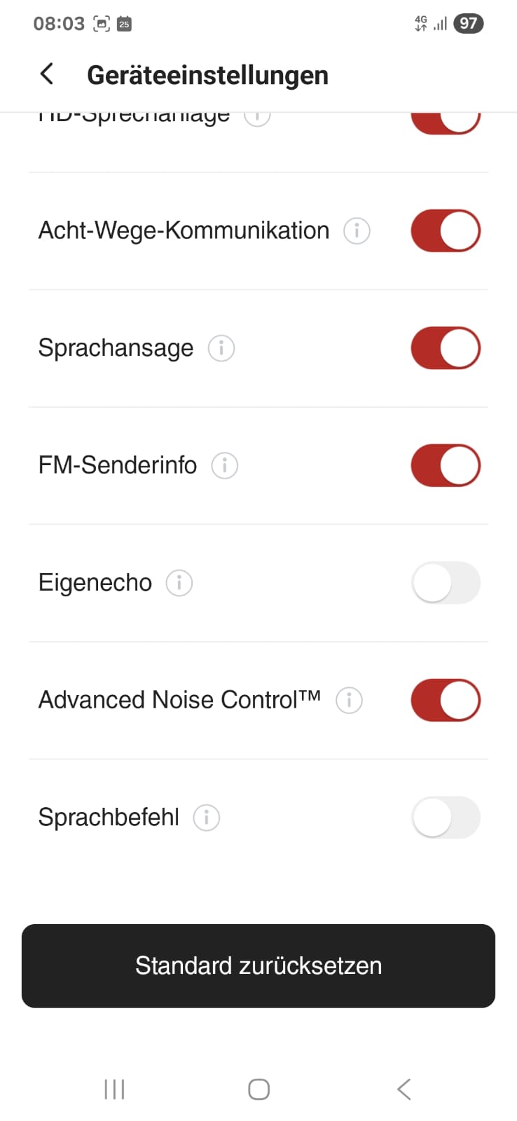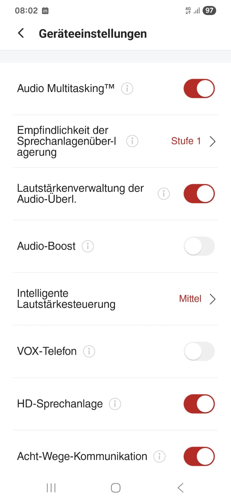 Ich habe ein Samsung XCover5. Bei mir ist die Acht-Wege-Kommunikation aus. Sprachausgabe über Anrufe, weil es bei Medien/Musik nicht funktionierte.