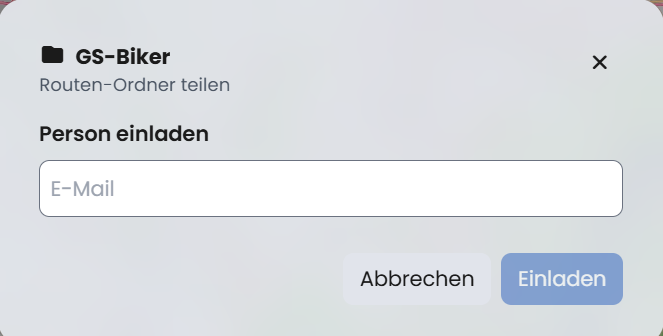 Personen die man mit dem User Namen (bei Kurviger) kennt sollte man auch einladen können, also nicht nur wie z.Z. per Mail Adresse, das erleichtert vieles innerhalb der Web- / später App Anwendung s. Bild dort geht z.Z. ja nur Mail !!
