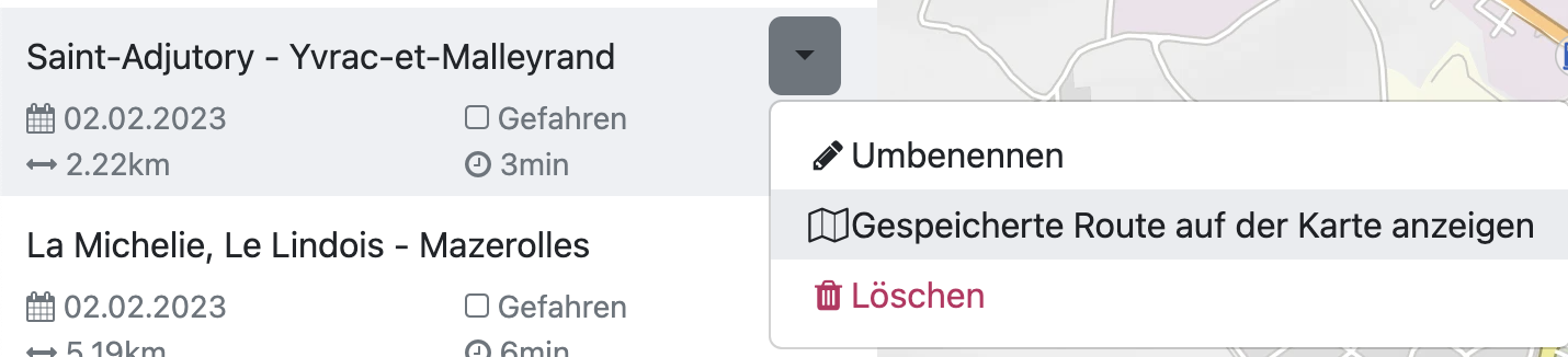 Arbeite ich an einer Route, die gespeichert war, dann bin ich in der Cloud genau in dem Speicherordner drin.