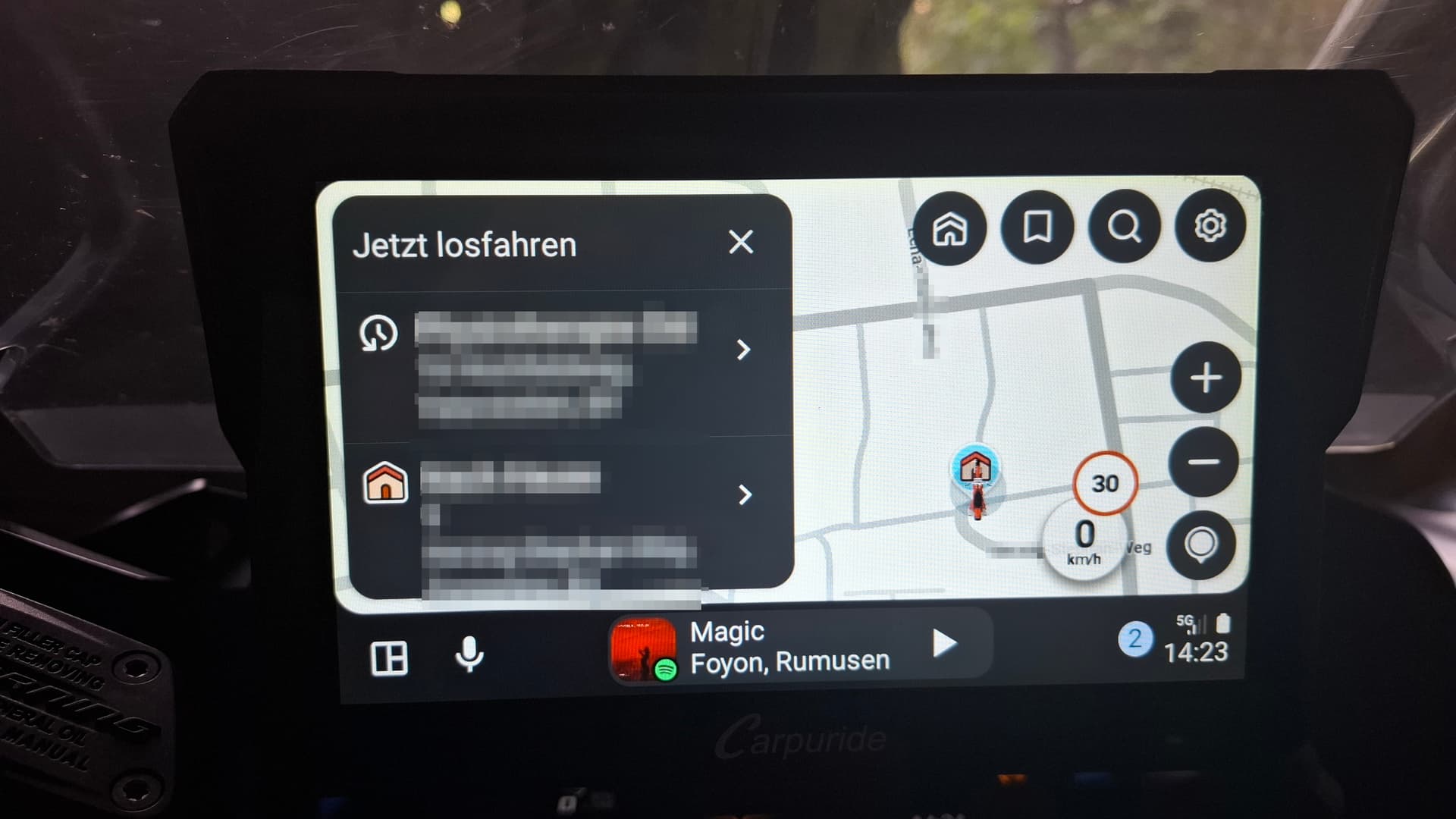 Hier stehe ich einfach nur in meinem Schuppen und Waze läuft auf dem Carpuride ohne Route.