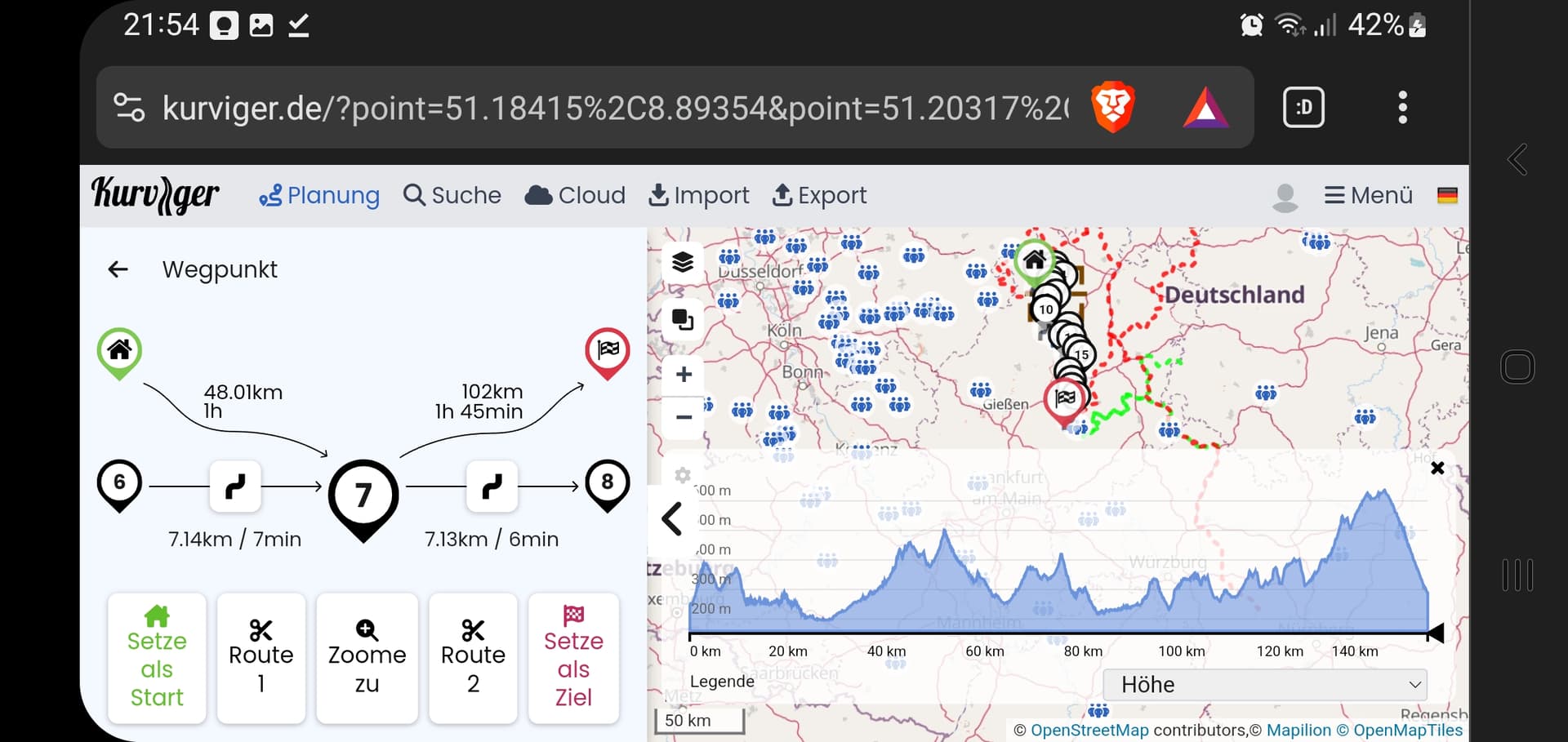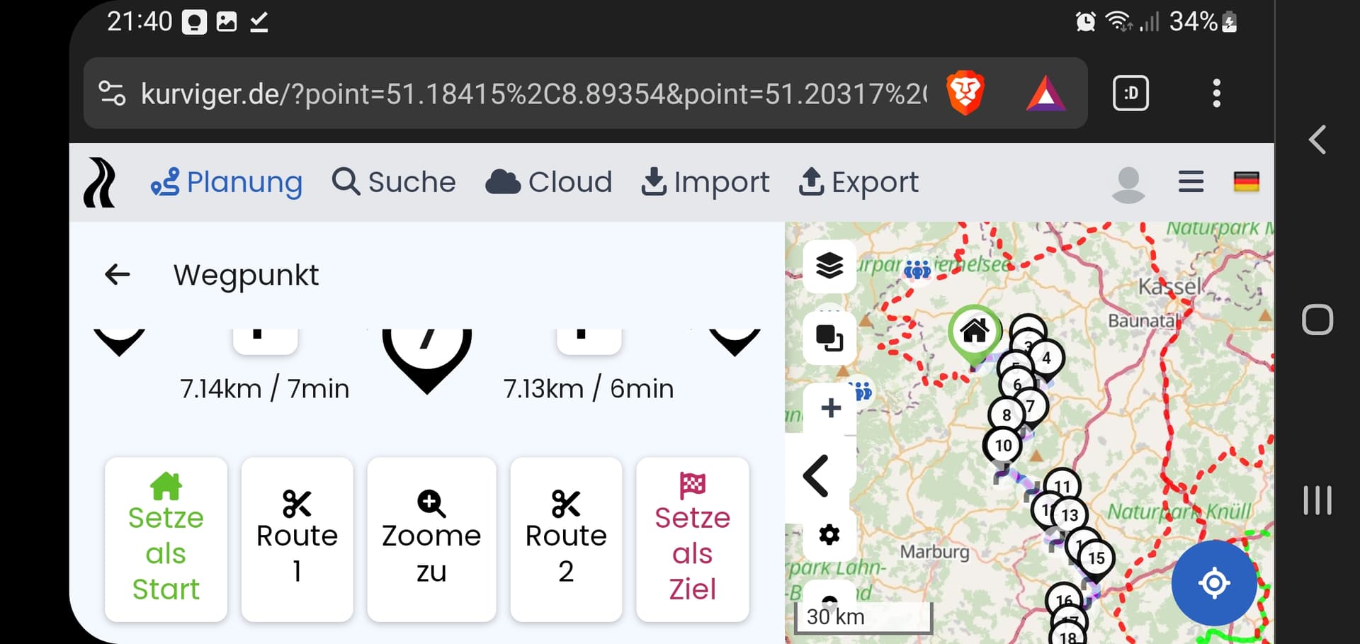 Für mich ist diese Art Web-Ansicht auf dem kleinem Display sehr hinderlich - die App ist fast unbrauchbar. Unabhängig davon, dass ich die Stützpunkte in einen Startpunkt umwandeln kann. ![]()