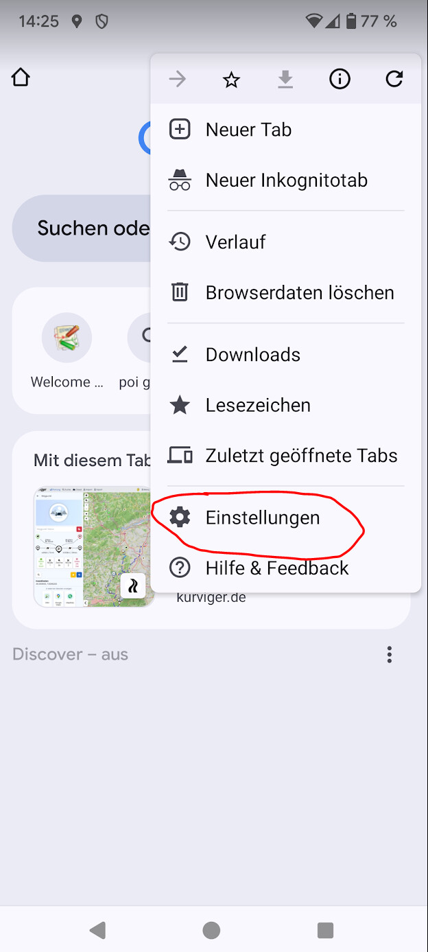 Mit dieser Einstellung sieht man dann auch auf dem Handy in Chrome die gewünschten Schaltflächen