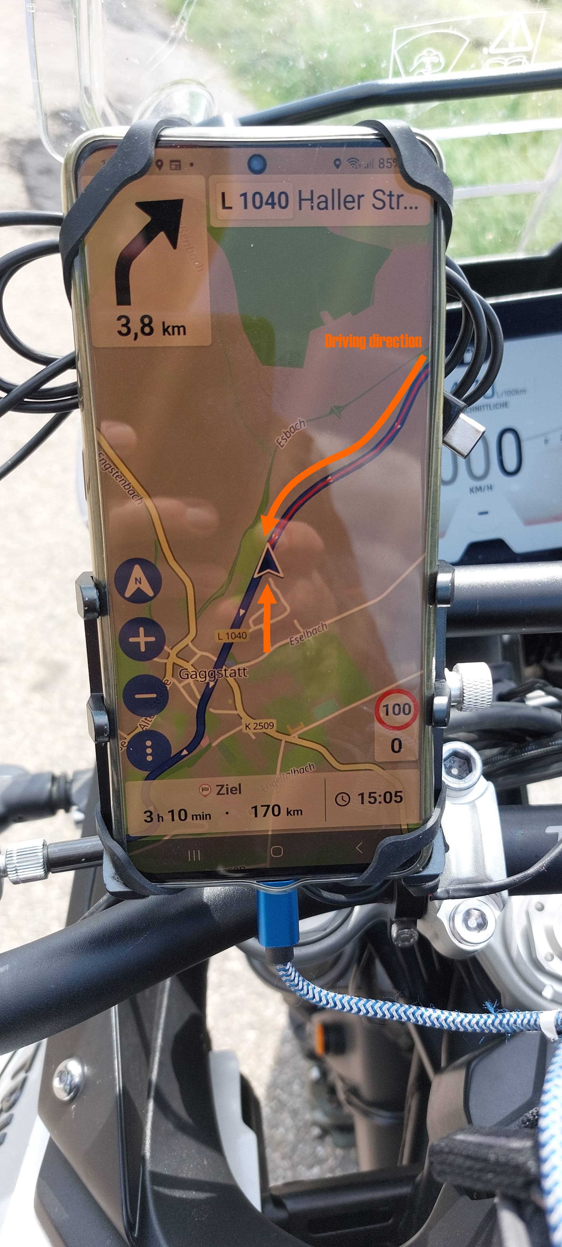 Here I show you, an image, which shows a moment of staying for red stoplight. The route was left for over 10 km already, because of the home route, I know very well.