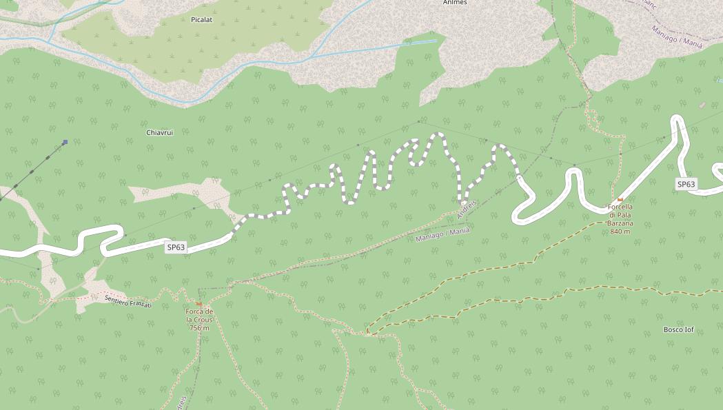 The attached link is about the section between point 13 and the destination. The SP63 runs between these points. This section is not accepted by Kurviger. In OSM, I find a marker that could be considered a private road, but online I find explicit information that it is a public provincial road (strada provinciale) owned by the government. Driving along it using Google Street View also provides no indication; it appears to be a small, paved road without any distinguishing features. Does anyone have any advice? Thanks.