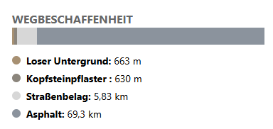 Die Osm Daten beinhalten für die meisten Strassen die Daten, welcher Belag auf der Strasse ist, ob Asphalt, Schotter, Kopfpflasterstein usw.