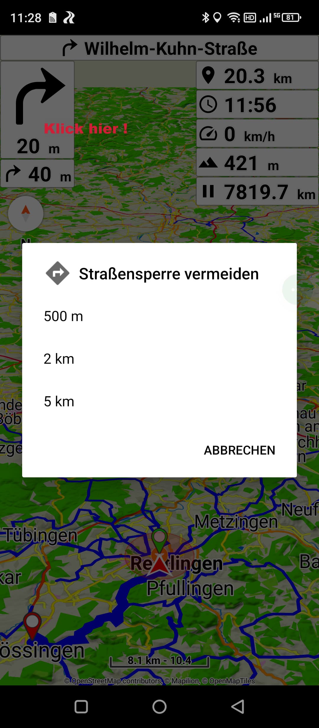 Wenn also zwei quasi parallele Sperrungen vorliegen, wird man von kurviger immer wieder hin und her geschickt und muss sich selbst eine Alternative suchen. Besser wäre es aus meiner Sicht, eine zuvor gesetzte Sperrung zumindest für die Zeit der Fahrt bestehen zu lassen, damit man bei paralellen Sperrungen nicht hin und her geroutet wird, oder bei Rundtoure etc. nicht wieder vor der gleichen Sperrung steht. Mit Abschließen der Fahrt und Speichern der getrackten Route könnten dann alle zuvor gesetzten Sperrungen wieder gelöscht werden.