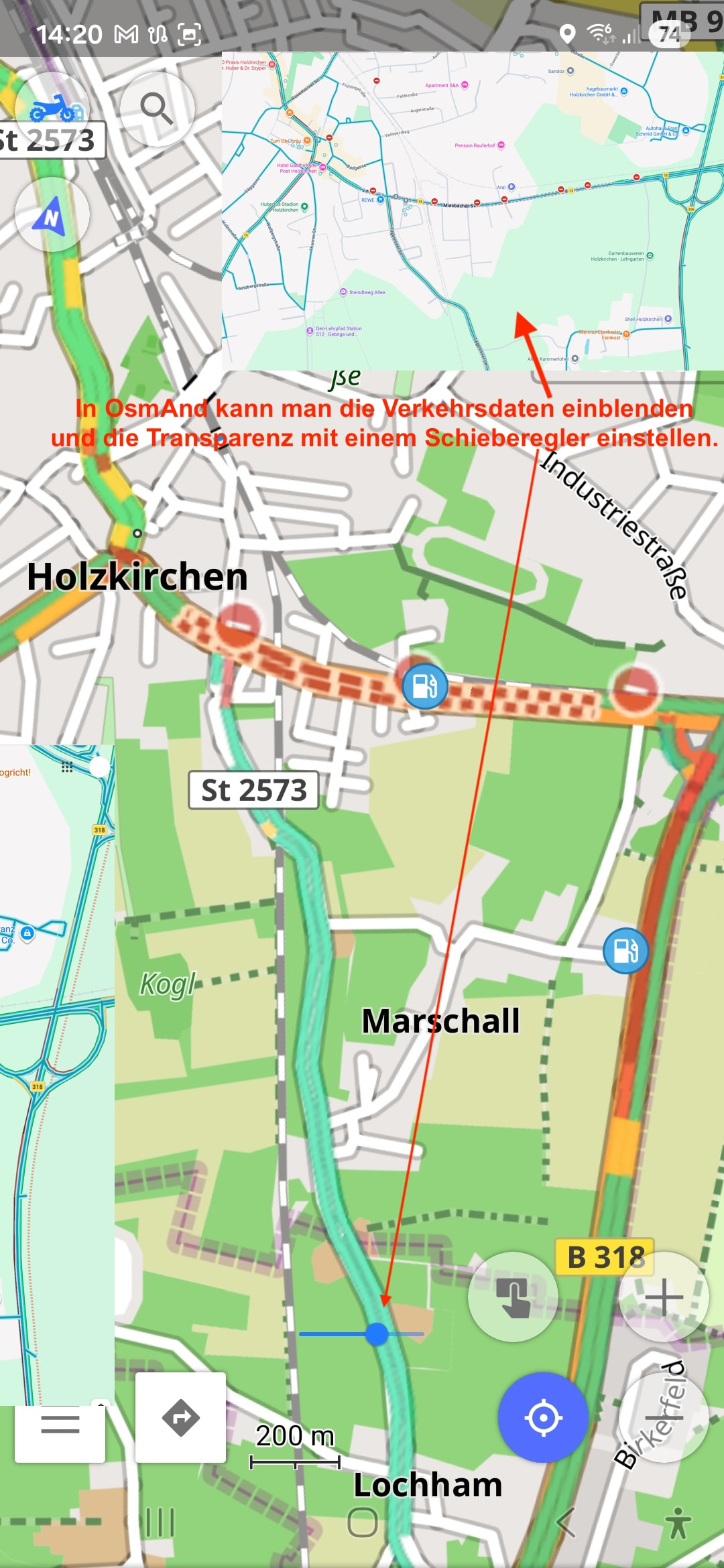 In OsmAnd kann man die Verkehrsdaten einblenden