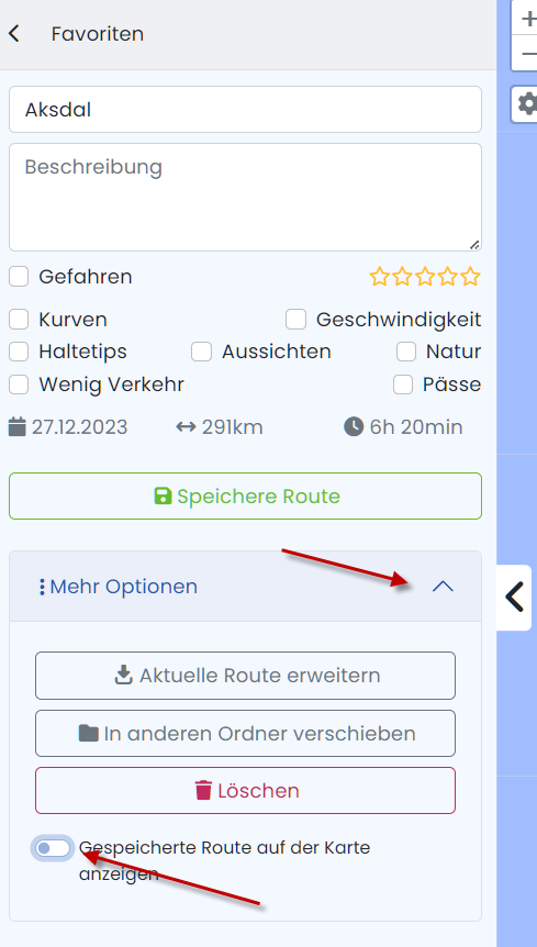 BTW, unter der Route liegt eine gestrichelte Linie. Durch erneut ‘Speichere Route’ geht sie nicht weg, auch nicht durch Overlay löschen