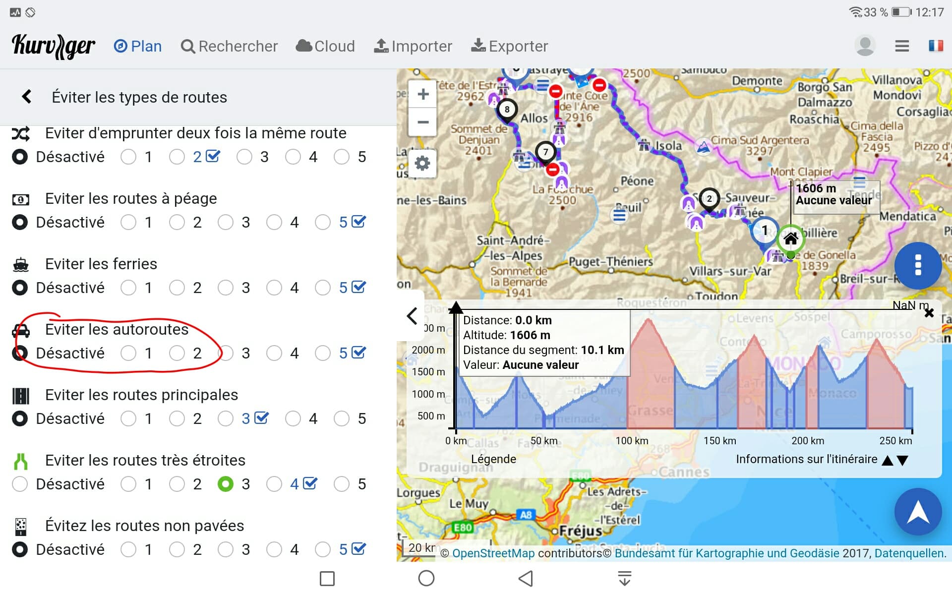 Bonjour, vous écrivez «Kurviger a 4 courbes et 7 évitements.