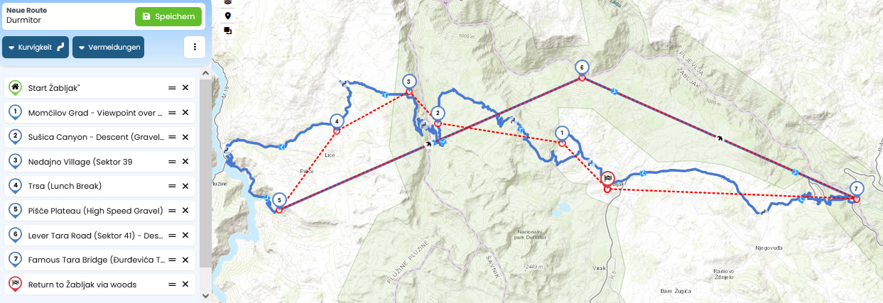 Option 2: Depending on how close you get to the original route with a Route Import, you could use the beeline function for offroad sections that our map data doesn’t entail.
