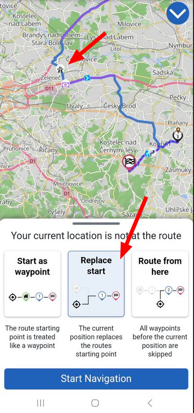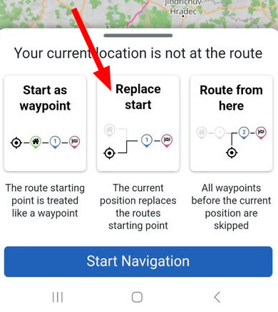 Now you have your location as a new start and you may change the “profile” for the “approaching part” of your route as desired.