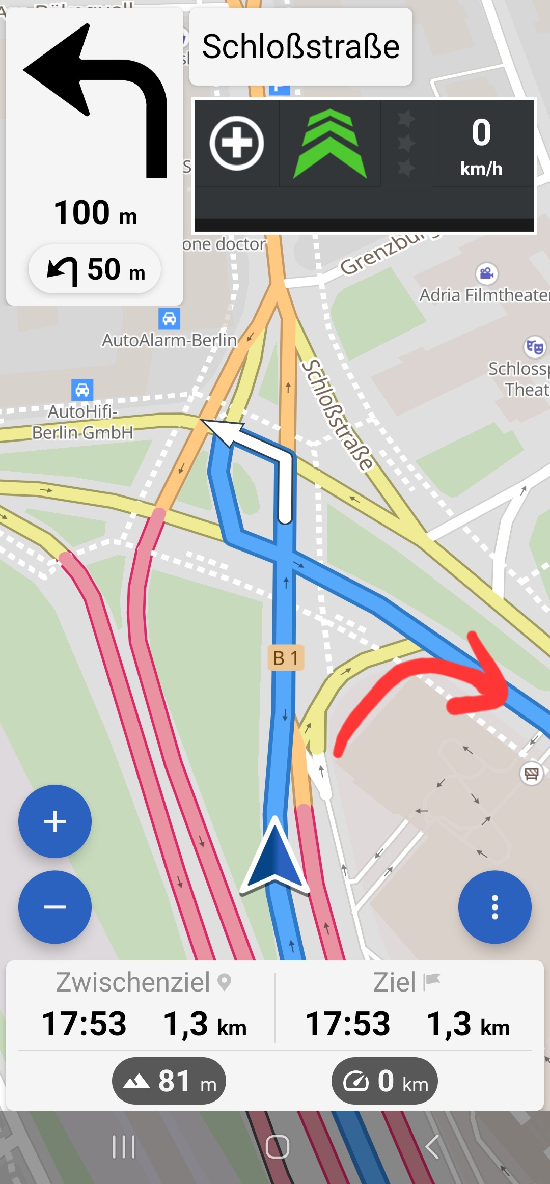 Using the beta, I navigated in Berlin and stumbled across this (useless - but I don’t know if avoidable) flaw/nonsense. When leaving the end of the freeway 103, the direction to go is right. Even if only avoid freeways is selected, but the freeway is used anyways, instead of turning right after the traffic lights, that terminate the freeway, the app wants to extend the route and use four more traffic lights for a gain of three corners and create at least one or two more stops.