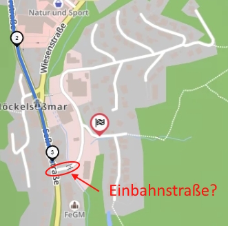 “An der Schüttenhöhe” ist als Einbahnstraße getaggt (vermutlich fälschlicherweise).