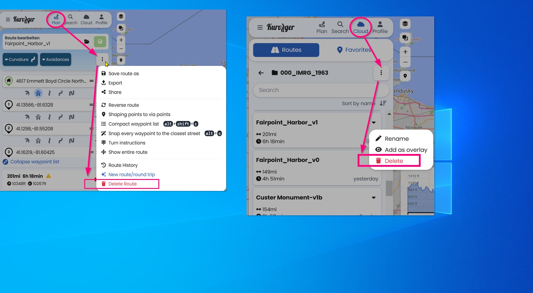 I am training a non computer person to do route planning using Kurviger.