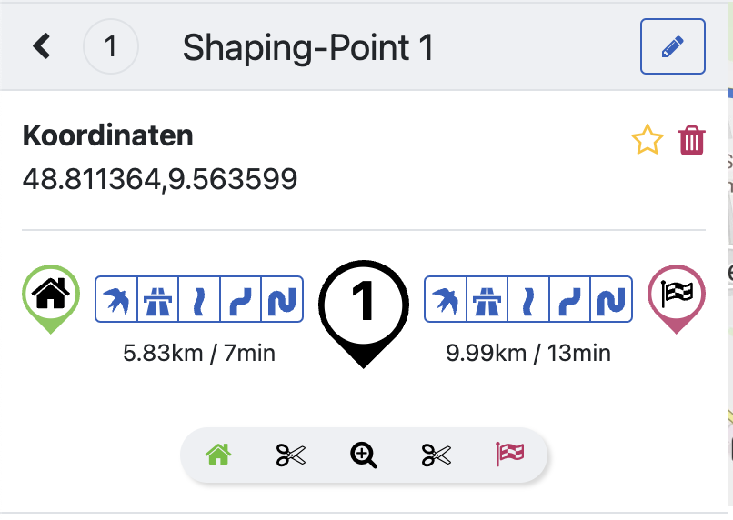 Zusätzlich wurde der Zoom-Button leicht überarbeitet. Er erlaubt nun zu einem Wegpunkt zu zoomen und anschließend wieder die ganze Route im Blick zu haben.