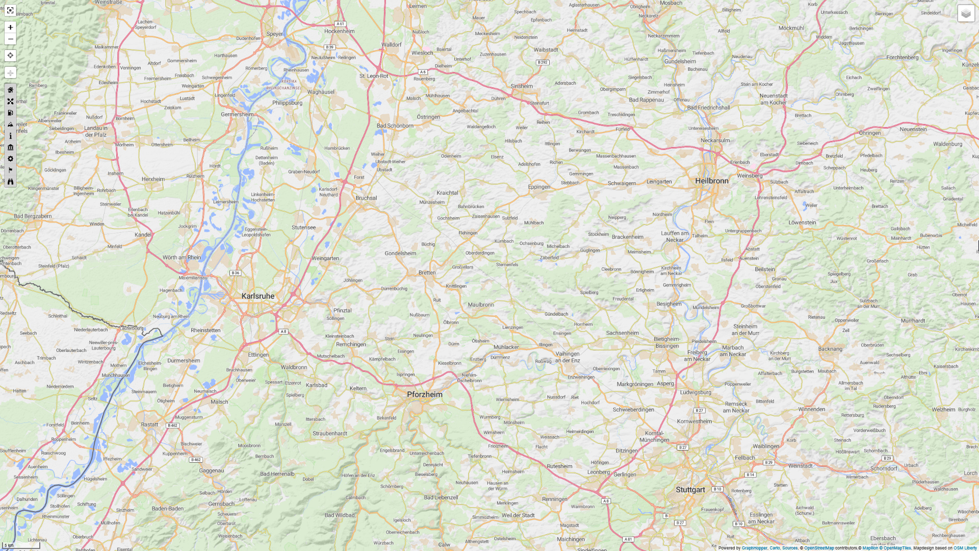 But ooops! From scale 20 km up to scale 100 km the residential areas of neighboured villages with not residential areas between them suddenly are displayed as one big residential area. This behaviour is shown at the example of the area of Hockenheim - Heilbronn - Stuttgart - Karlsruhe. In this area for example the area of Stuttgart -Heilbronn is recognizable as one big residential area. This behaviour you can see at the scales from 20 km to 100 km. Following you find the pictures from scale 5 km to scale 300 km: