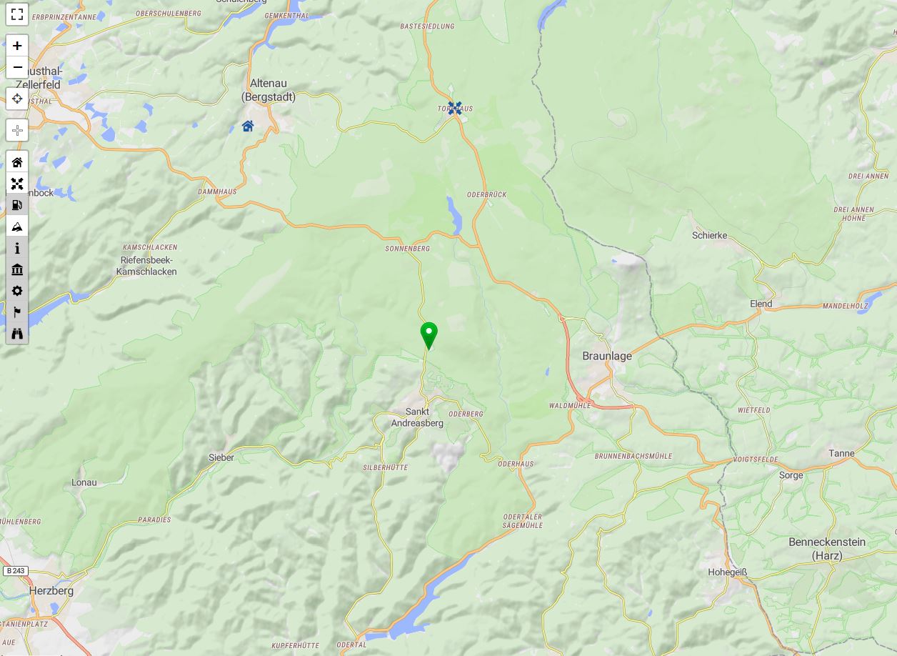 Wenn ich einen Routenverlauf im Detail festlegen will, nutze ich lieber Map Surfer, diese Karte erhält wesentlich mehr Hinweise als Liberty. Z.B im Bild die Kiesgruben links oder die Hügelbezeichnungen rechts. Aber je nach Zoomstufe sind manche Straßen bei Liberty besser zu erkennen. Ich werde deshalb bei der Routenplanung immer mal wieder umschalten.