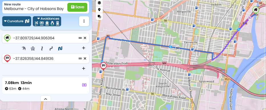Welcome to the Kurviger Forum, and my regards to Melbourne ! This looks strange and is a OSM issued. I am sure one of the OSM Specialists will be check in near future.