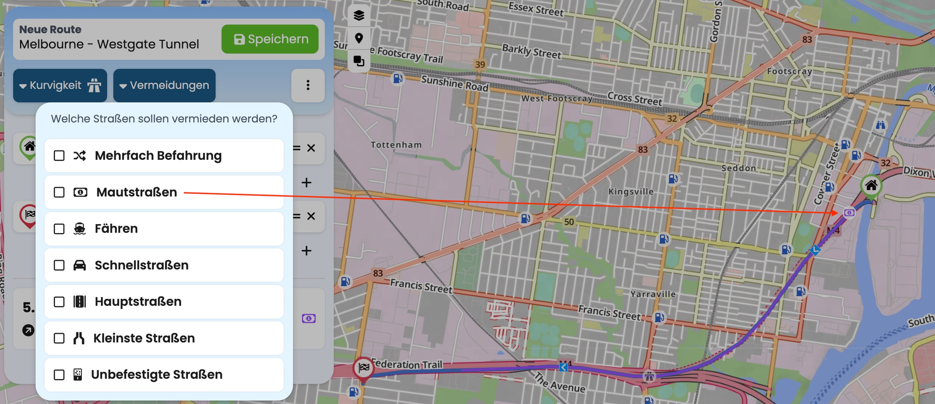 There’s a new tunnel in Melbourne Australia called the Westgate Tunnel. When planning a route Kurviger seemed to think I could exit the tunnel where I couldn’t. The route had setting for avoid tolls so this may be why it tired to avoid it but I’d have thought it would respect what you can and can’t do. I reduced the route to start at a valid entry and a valid exit and it still tried to exit.